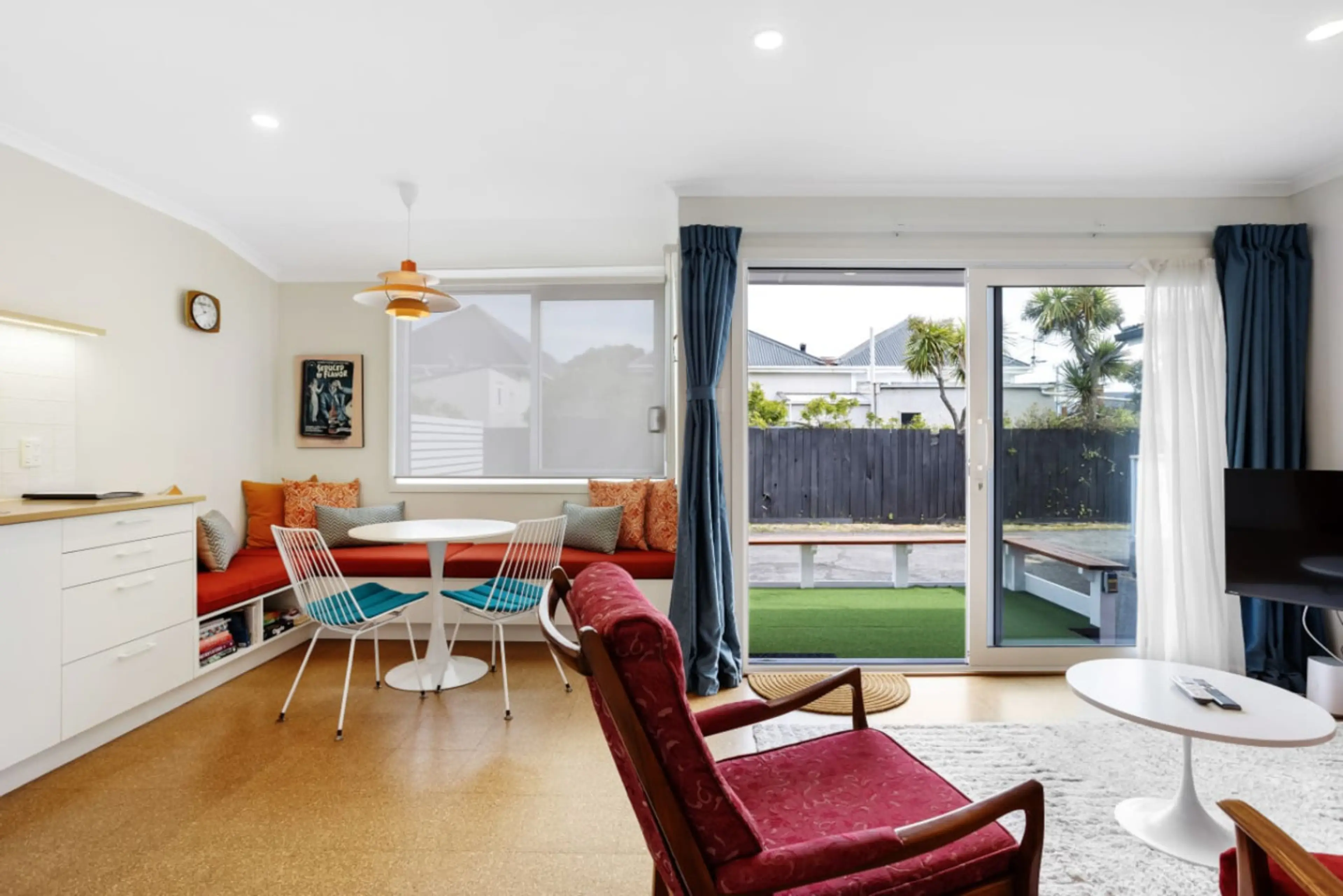 Kick back in this sunny one-bedroom beach nook just a 2-minute stroll from St Clair’s esplanade and famous surf beach. With relaxed retro vibes and all the essentials, it’s an easy, happy place to land. Perfect for a couple, small family, or business travelers who want work-life balance (laptop by d...